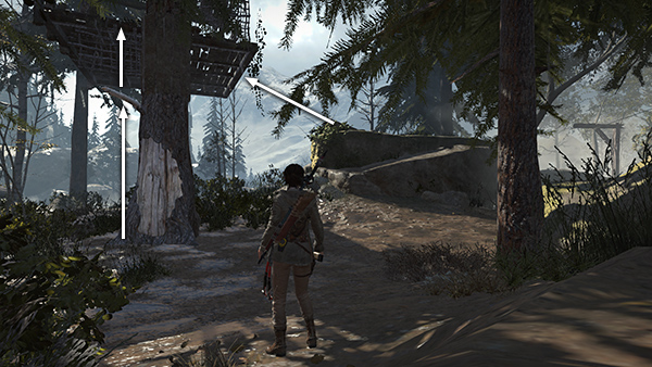 This document is on the path between the tunnel where you exit the FLOODED ARCHIVES and the Ridgeline Base Camp in the northwest corner of the valley. (See the walkthrough and map.) If you missed it the first time, return to the Ridgeline camp, cross the stream, and follow the path to the east. When you come to the wide gap, use the tree branch to swing across. Then use your grapple to climb onto the wooden platform to get the document. (Click screenshot to enlarge.)