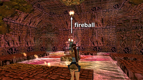 The fireball should then hit the spot where Lara just was. Keep shooting as you do this.