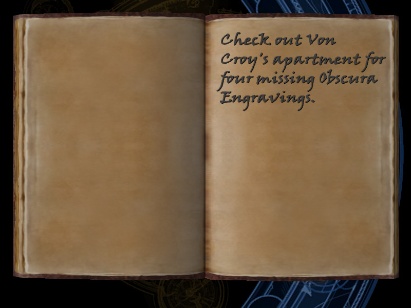 | 7/53 | (41) Mathias Vasiley in Prague. Has sent me four Obscura Engravings. He kept the fifth Engraving back. Wants more money. [includes image] | Margot Carvier's Apartment | screenshot | |