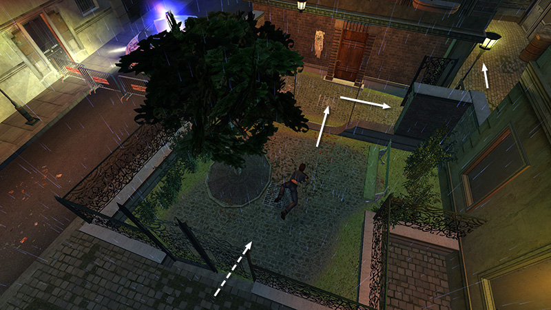 SHORTCUT: You could also go through the gate where the policeman went. You'll emerge near the end of the level, but you'll miss a bunch of pickups and the "Parkour!" achievement/trophy.
