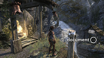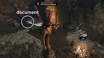 Unlike the other documents which appear in the game world as physical books which must be picked up and examined, Lara makes entries in her journal when she rests at various base camps. When she sits down at a camp, you'll hear her talking about what's going on. Afterward, these musings are stored in the Documents screen so you can review them. Lara's journals are not marked on the level maps and are not counted in the total number of documents on each level's map key.