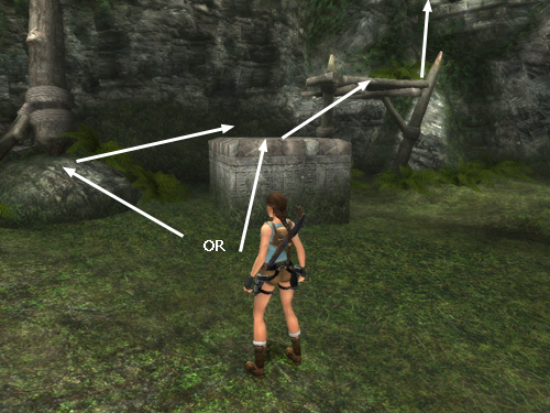 NOTE: There is a possible bug in the above section in which Lara cannot grab onto the vertical pole to climb it. If this happens, try changing the Manual Grab setting in the Options menu. (Press Escape/Start then select Options > Controls > Manual Grab and set this option to Off.) With auto-grab enabled, Lara should be able to climb the pole. Then you can switch back to manual grab later if you like. (Thanks to Chris G. for this tip.)